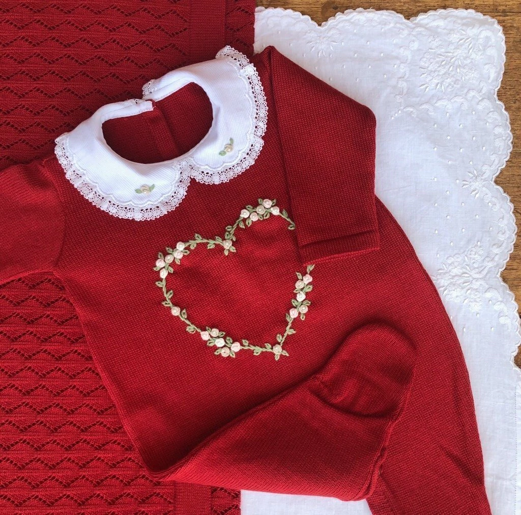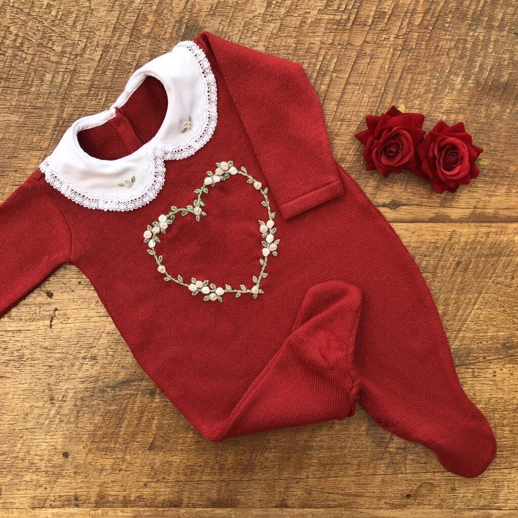 Macacão Antonella de tricô e bordados à mão com muito amor.