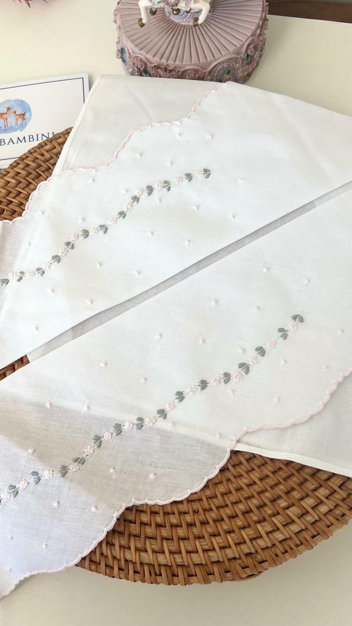 Vira manta triangular em cambraia linho bordada à mão nas laterais!