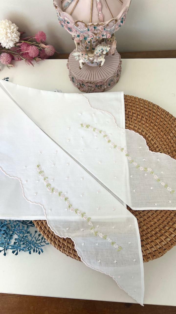 Vira manta triangular em cambraia linho bordada à mão nas laterais!